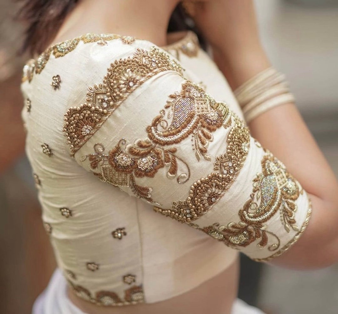 Raw Silk Off White Maggam Blouse With Different Shades Of Etsy