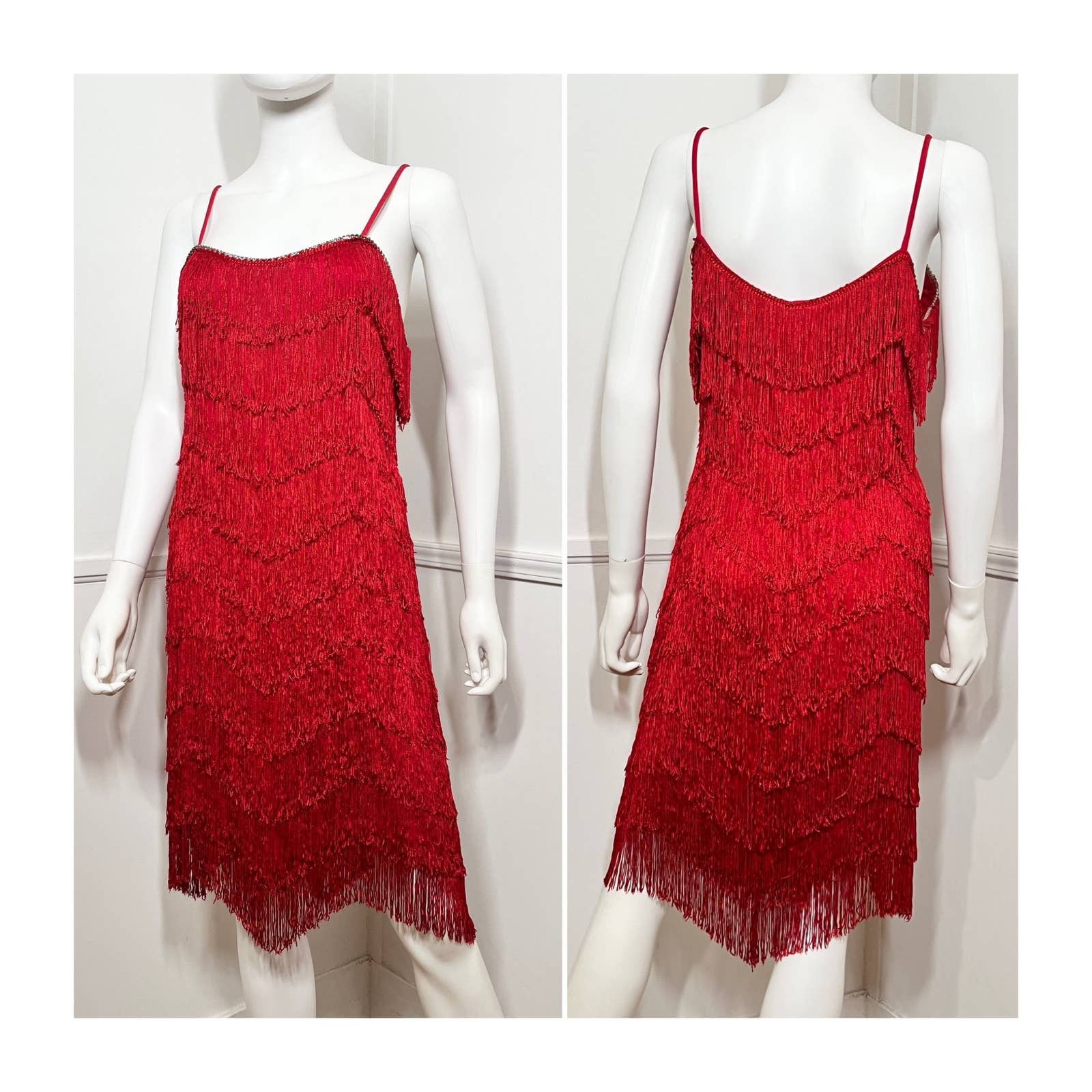 Primavera 3701 Size 6 Red Short Beaded Fringe Formal Cocktail Dress Lo Glass Slipper Formals
